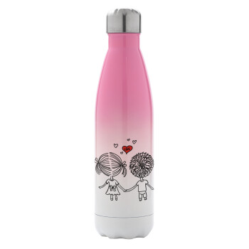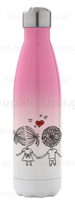 Hold my hand for ever, Metal mug thermos Pink/White (Stainless steel), double wall, 500ml