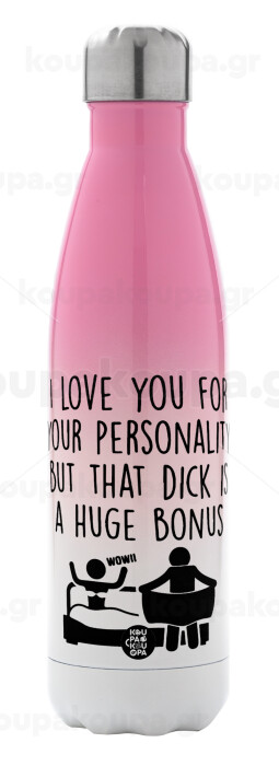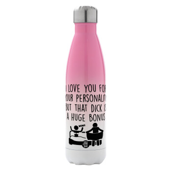 I Love You for Your Personality But that D... Is a Huge Bonus , Metal mug thermos Pink/White (Stainless steel), double wall, 500ml