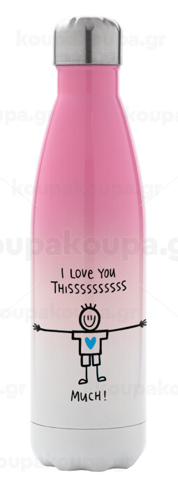 I Love you thissss much (boy)..., Metal mug thermos Pink/White (Stainless steel), double wall, 500ml