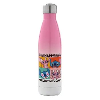 Lilo & Stitch Happy valentines day, Metal mug thermos Pink/White (Stainless steel), double wall, 500ml