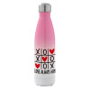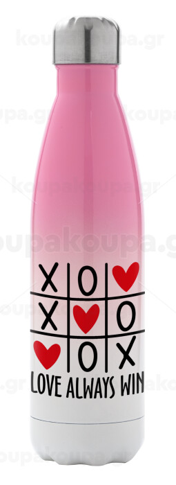 Love always win, Metal mug thermos Pink/White (Stainless steel), double wall, 500ml