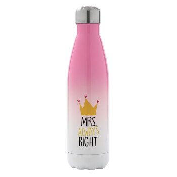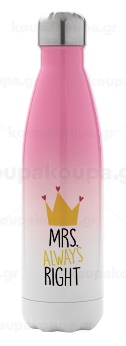 Mrs "Always" right, Metal mug thermos Pink/White (Stainless steel), double wall, 500ml