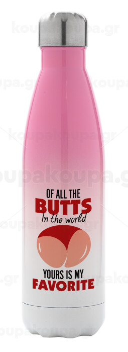 Of all the Butts in the world, your's is my favorite, Metal mug thermos Pink/White (Stainless steel), double wall, 500ml