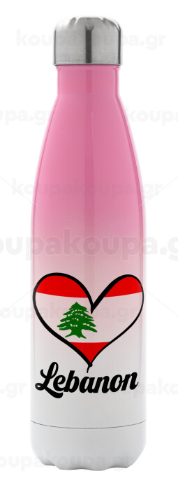 Lebanon flag, Metal mug thermos Pink/White (Stainless steel), double wall, 500ml
