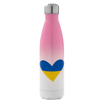 UKRAINE heart, Metal mug thermos Pink/White (Stainless steel), double wall, 500ml