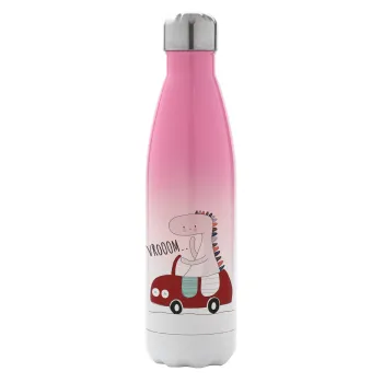 Βρουμ βρουμ, Metal mug thermos Pink/White (Stainless steel), double wall, 500ml