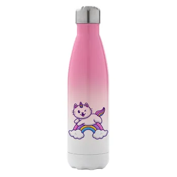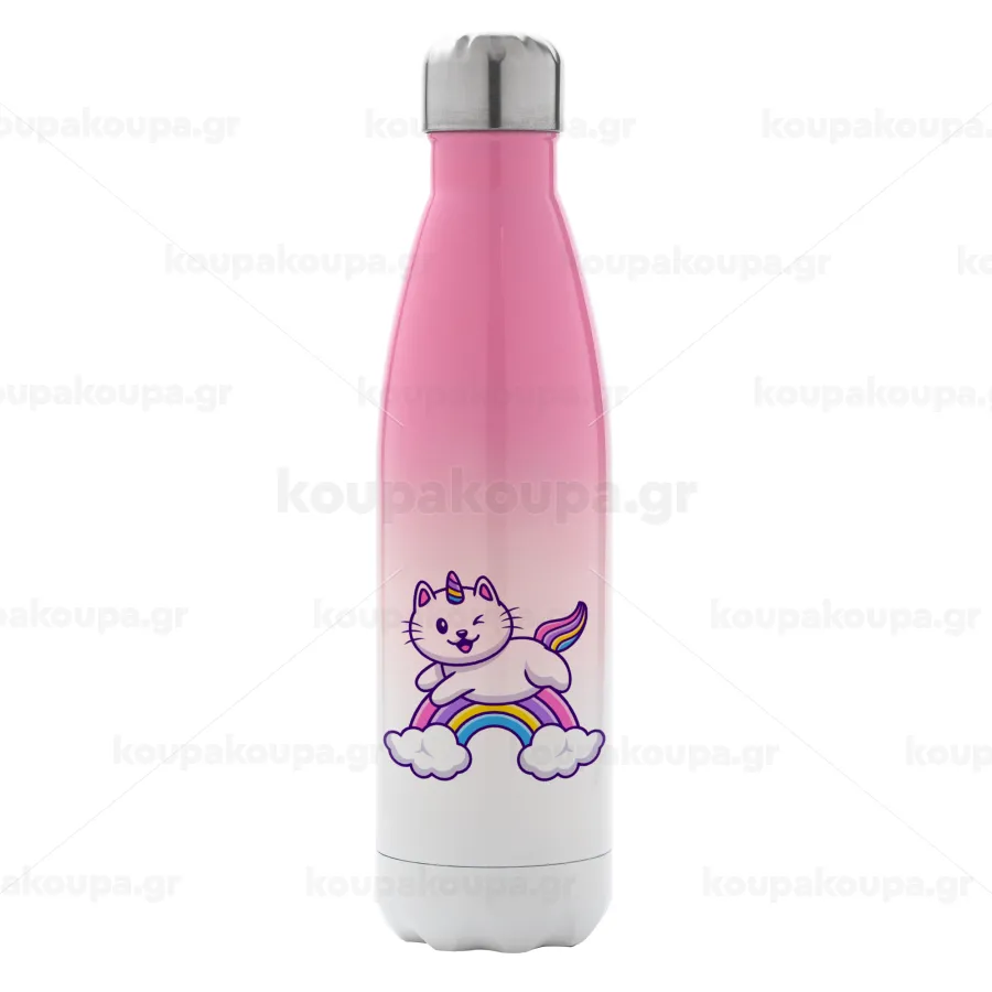 Cute cat unicorn, Metal mug thermos Pink/White (Stainless steel), double wall, 500ml