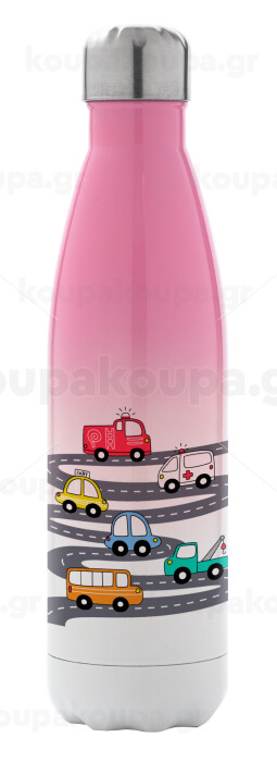 Hand drawn childish set with cars, Metal mug thermos Pink/White (Stainless steel), double wall, 500ml