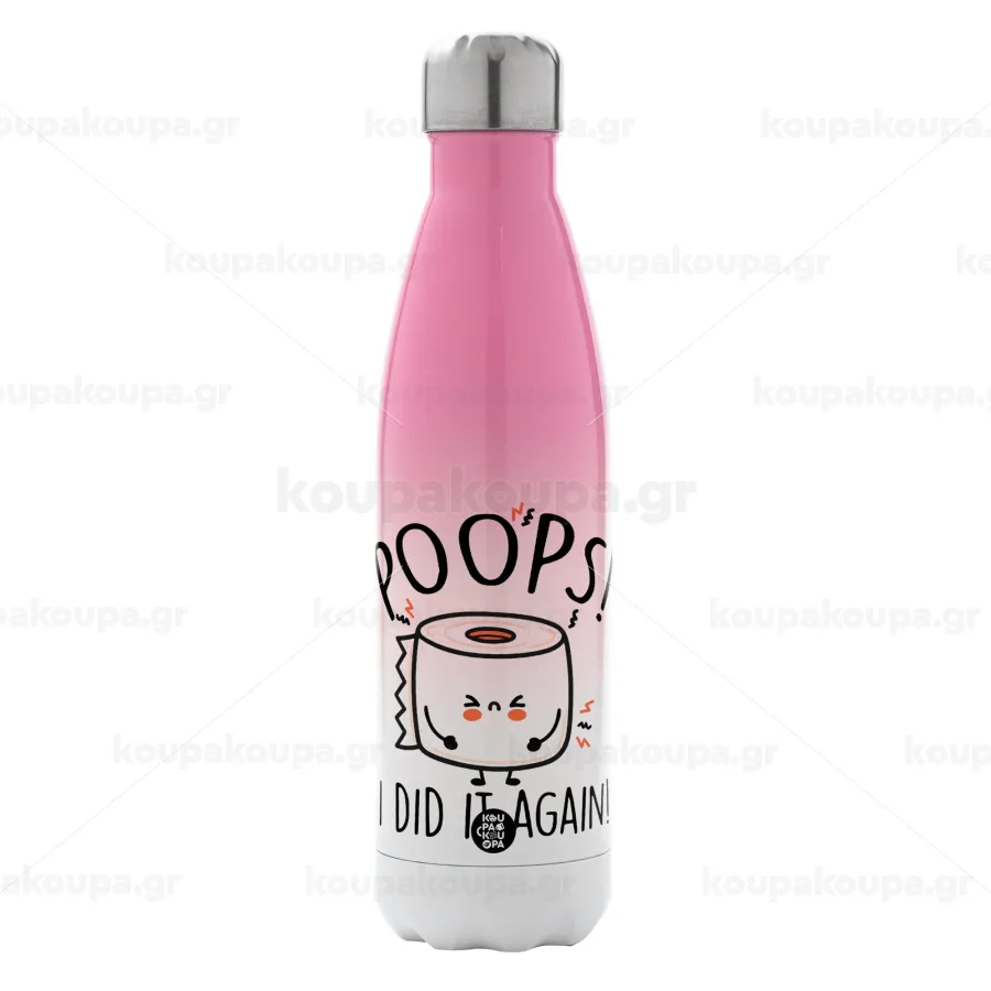 Poops!...I Did It Again, Metal mug thermos Pink/White (Stainless steel), double wall, 500ml