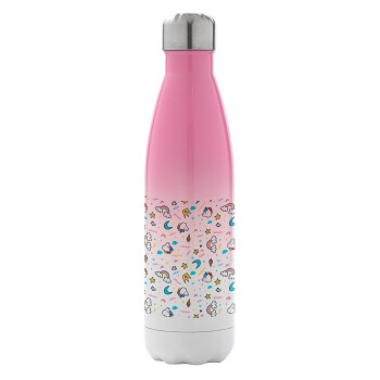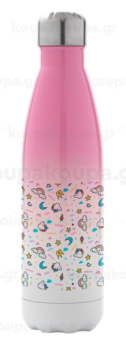 Unicorn pattern white, Metal mug thermos Pink/White (Stainless steel), double wall, 500ml
