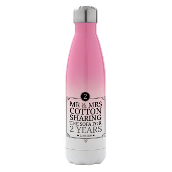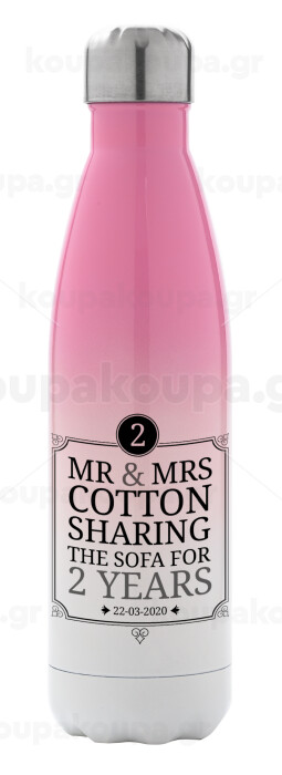 Mr & Mrs Sharing the sofa, Metal mug thermos Pink/White (Stainless steel), double wall, 500ml