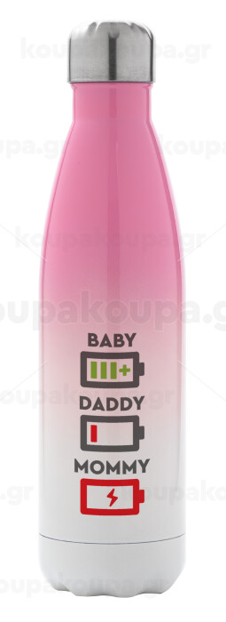 BABY, MOMMY, DADDY Low battery, Metal mug thermos Pink/White (Stainless steel), double wall, 500ml
