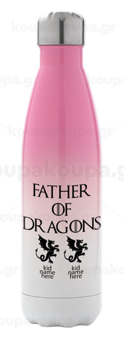 GOT, Father of Dragons (με ονόματα παιδικά), Metal mug thermos Pink/White (Stainless steel), double wall, 500ml