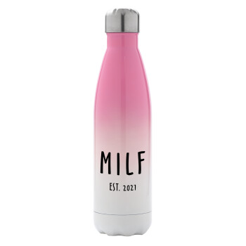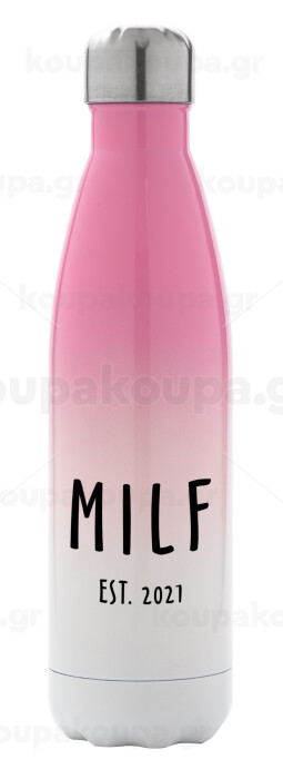 MILF, Metal mug thermos Pink/White (Stainless steel), double wall, 500ml