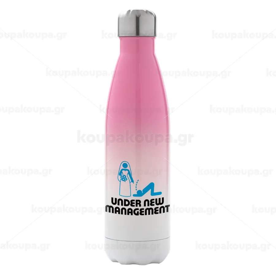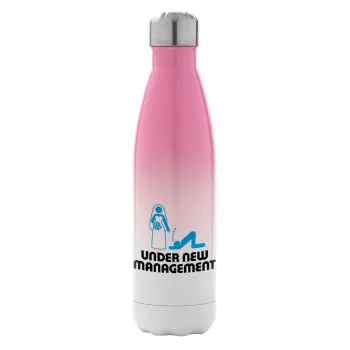 Under new Management, Metal mug thermos Pink/White (Stainless steel), double wall, 500ml