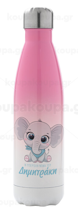 Η νονά μου, ελεφαντάκι γαλάζιο, Metal mug thermos Pink/White (Stainless steel), double wall, 500ml