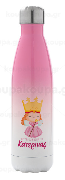 Η νονά μου, πριγκίπισσα, Metal mug thermos Pink/White (Stainless steel), double wall, 500ml