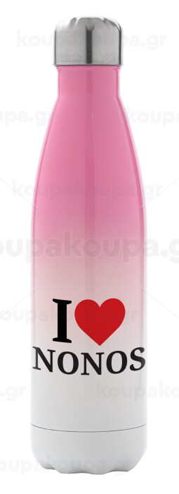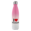 I Love ΝΟΝΟΣ, Metal mug thermos Pink/White (Stainless steel), double wall, 500ml
