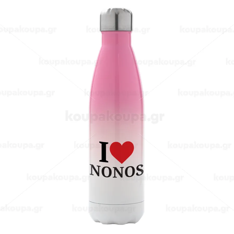 I Love ΝΟΝΟΣ, Metal mug thermos Pink/White (Stainless steel), double wall, 500ml