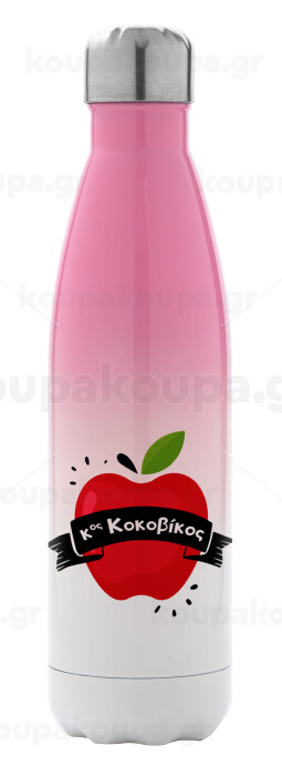 Αναμνηστικό Δώρο Δασκάλου Κόκκινο Μήλο, Metal mug thermos Pink/White (Stainless steel), double wall, 500ml