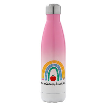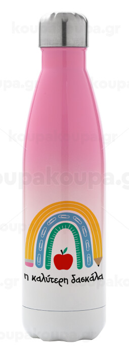 Η καλύτερη δασκάλα, Metal mug thermos Pink/White (Stainless steel), double wall, 500ml
