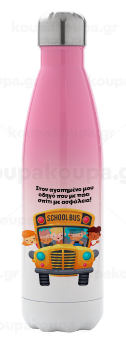 Στον αγαπημένο μου οδηγό που με πάει σπίτι με ασφάλεια!, Metal mug thermos Pink/White (Stainless steel), double wall, 500ml