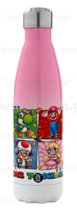 Back to the School Mario & Friends, Metal mug thermos Pink/White (Stainless steel), double wall, 500ml