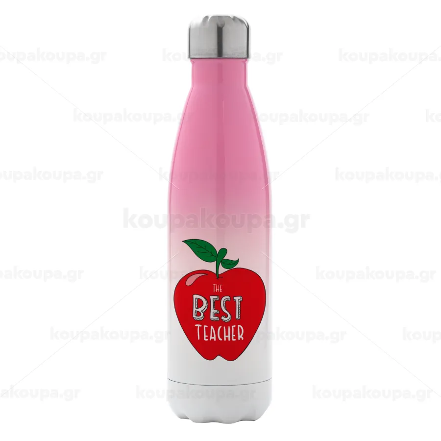 Best teacher, Metal mug thermos Pink/White (Stainless steel), double wall, 500ml