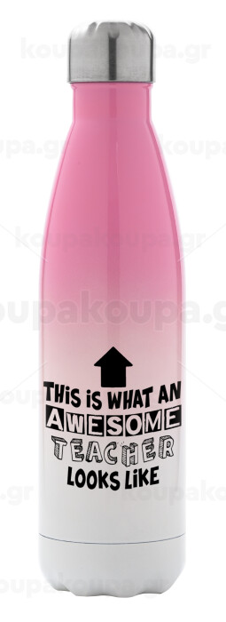 This is what an awesome teacher looks like!!! , Metal mug thermos Pink/White (Stainless steel), double wall, 500ml