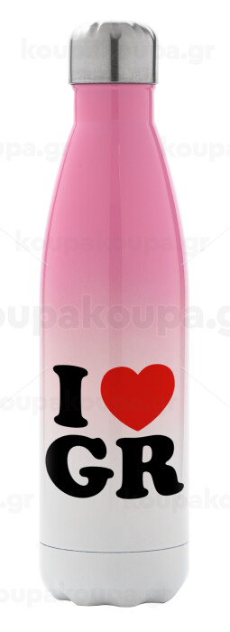 I Love GR, Metal mug thermos Pink/White (Stainless steel), double wall, 500ml