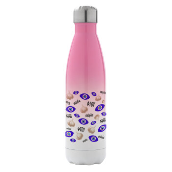 Φτου, φτου, σκόρδα!!!, Metal mug thermos Pink/White (Stainless steel), double wall, 500ml