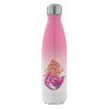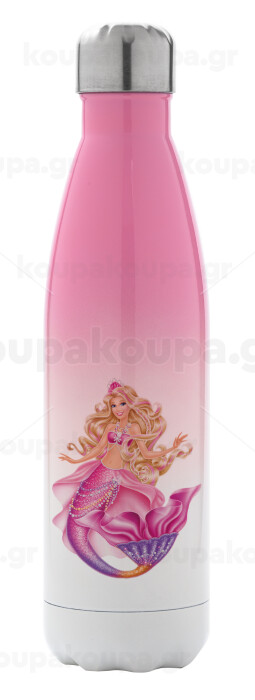 Barbie mermaid blue, Metal mug thermos Pink/White (Stainless steel), double wall, 500ml