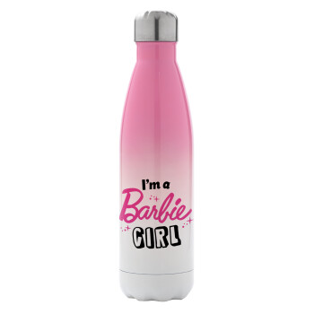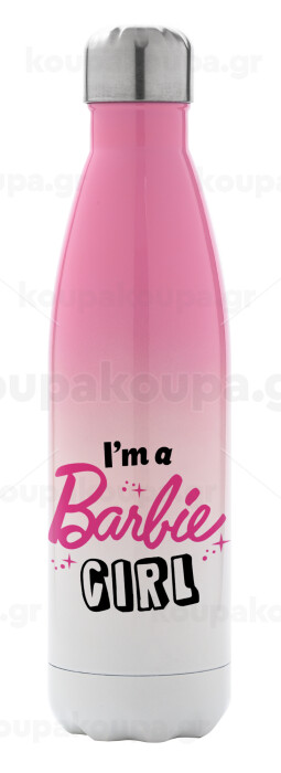 I'm Barbie girl, Metal mug thermos Pink/White (Stainless steel), double wall, 500ml