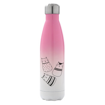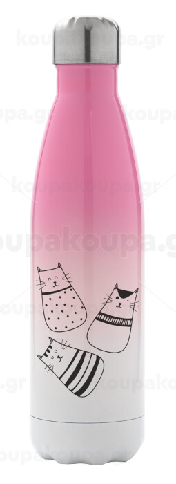 Cute cats, Metal mug thermos Pink/White (Stainless steel), double wall, 500ml