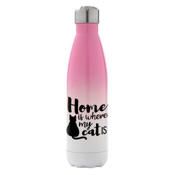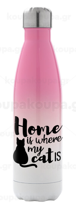 Home is where my cat is!, Metal mug thermos Pink/White (Stainless steel), double wall, 500ml