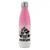 Life is Better with a Horses, Metal mug thermos Pink/White (Stainless steel), double wall, 500ml