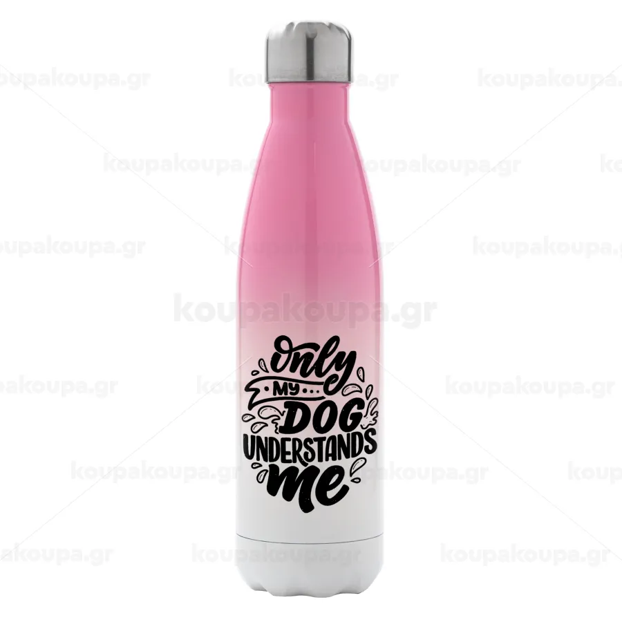 Only my DOG, understands me, Metal mug thermos Pink/White (Stainless steel), double wall, 500ml