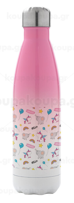 Happy Clouds Doodle, Metal mug thermos Pink/White (Stainless steel), double wall, 500ml