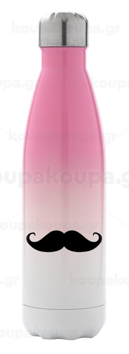 moustache, Metal mug thermos Pink/White (Stainless steel), double wall, 500ml