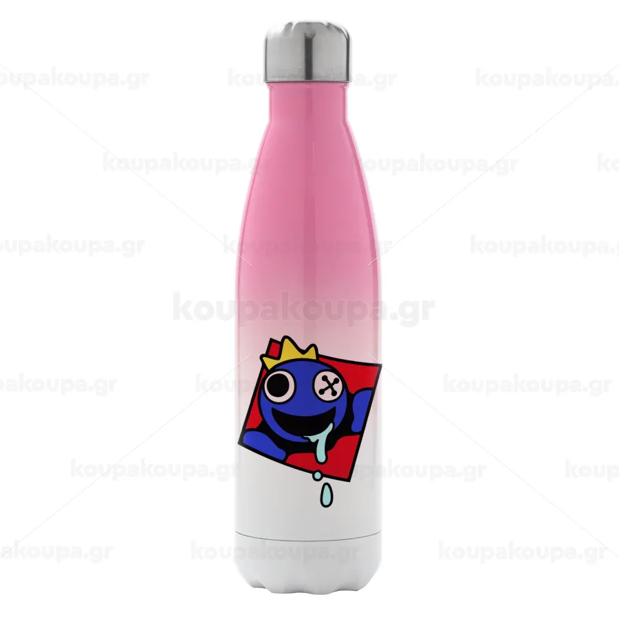 Blue, Rainbow friends, Metal mug thermos Pink/White (Stainless steel), double wall, 500ml