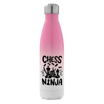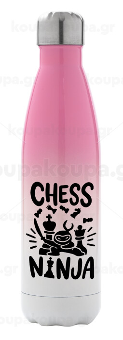 Chess ninja, Metal mug thermos Pink/White (Stainless steel), double wall, 500ml