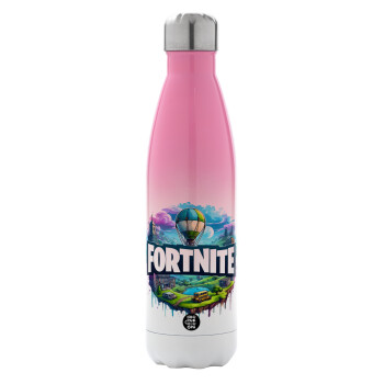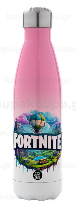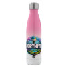 Fortnite land, Metal mug thermos Pink/White (Stainless steel), double wall, 500ml
