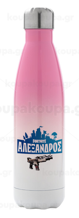 Fortnite with gun με το όνομα σου, Metal mug thermos Pink/White (Stainless steel), double wall, 500ml