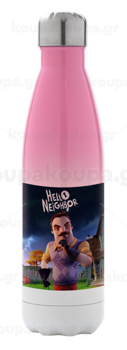 Hello Neighbor, Metal mug thermos Pink/White (Stainless steel), double wall, 500ml