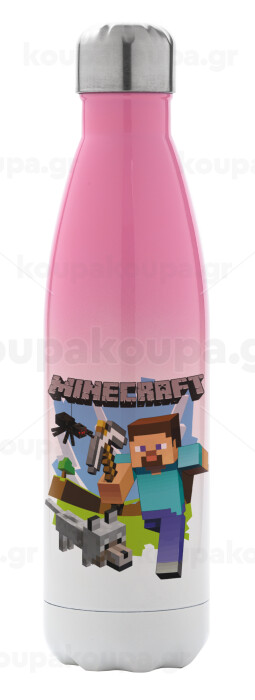 Minecraft Alex, Metal mug thermos Pink/White (Stainless steel), double wall, 500ml