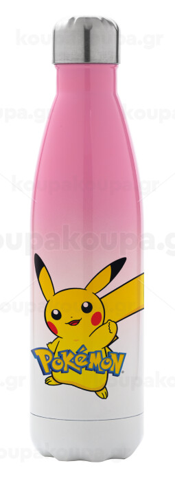 Pokemon pikachu, Metal mug thermos Pink/White (Stainless steel), double wall, 500ml