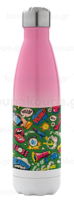 Pop art colorful seamless, Metal mug thermos Pink/White (Stainless steel), double wall, 500ml