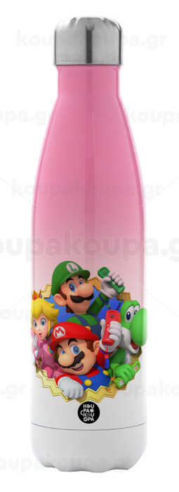 Super mario and Friends, Metal mug thermos Pink/White (Stainless steel), double wall, 500ml