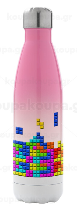 Tetris blocks, Metal mug thermos Pink/White (Stainless steel), double wall, 500ml