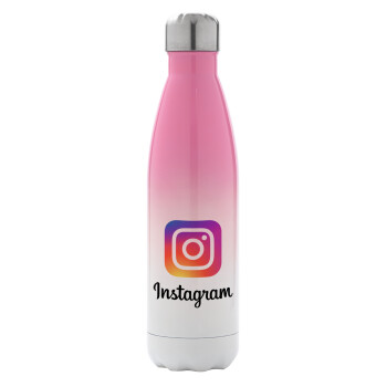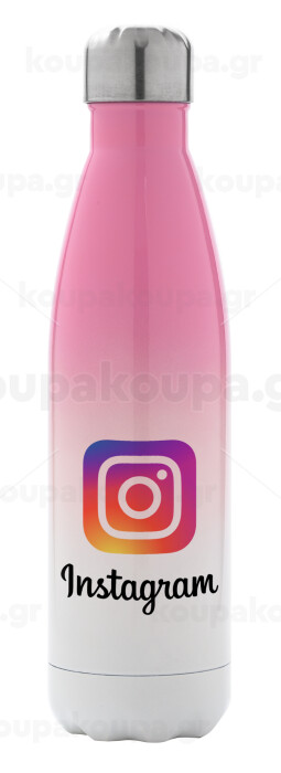 Instagram, Metal mug thermos Pink/White (Stainless steel), double wall, 500ml